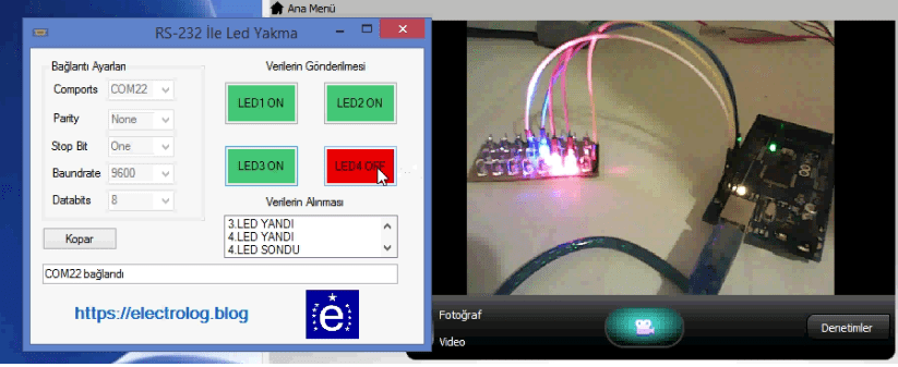 Serial.print("4.LED YANDI\n");//Bu komut ile PC ye ifade gönderiliyor